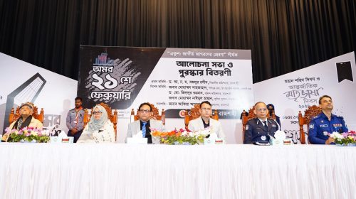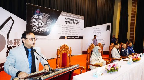 ক্যাপশন: অমর ২১শে ফেব্রুয়ারি উপলক্ষ্যে জেলা প্রশাসন, রাজশাহীর আয়োজনে জেলা শিল্পকলা একাডেমি মিলনায়তনে “একুশ: জাতীয় জাগরণের প্রেরণা” শীর্ষক আলোচনা সভা ও পুরস্কার বিতরণী অনুষ্ঠিত হয়।