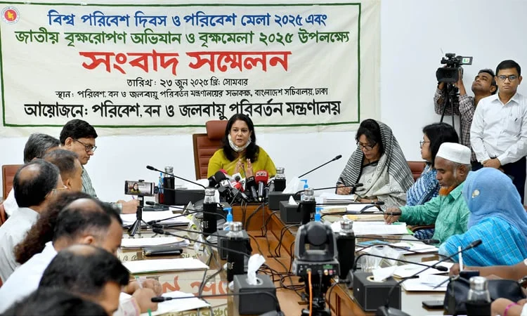 সচিবালয়ে পরিবেশ মন্ত্রণালয় আজ আয়োজিত এক সংবাদ সম্মেলনে উপদেষ্টা আরও জানান,দেশের বায়ুদূষণ, শব্দদূষণ, নদীদূষণ নিয়ন্ত্রণে সরকার বিভিন্নমুখী কার্যকর পদক্ষেপ গ্রহণ ও বাস্তবায়ন করছে। ইতোমধ্যে কিছু দৃশ্যমান কাজ হয়েছে। চলতি বছরের ২ জানুয়ারি থেকে ১৯ জুন পর্যন্ত যানবাহনের মধ্য দিয়ে মাত্রাতিরিক্ত কালো ধোঁয়া নির্গমন,বায়ুদূষণকারী অবৈধ ইটভাটা,স্টিল মিল,শব্দ দূষণ,ঝুঁকিপূর্ণ বর্জ্য নির্গমন,কঠিন বর্জ্য ব্যবস্থাপনা,সীসা বা ব্যাটারি রি-সাইক্লিং,কারখানা,জলাশয় ভরাট,টায়ার পাইরোলাইসিস, চারকোল কারখানাকে জরিমানা হয়েছে। খোলা অবস্থায় নির্মাণসামগ্রী রেখে বায়ুদূষণের বিরুদ্ধে মোট ১ হাজার ৬৩ টি মোবাইল কোর্ট অভিযান পরিচালনা করে ২ হাজার ৪৯৯ টি মামলার মাধ্যমে ২৫ কোটি ৩৫ লাখ ২০ হাজার টাকা জরিমানা আদায় করা হয়েছে।