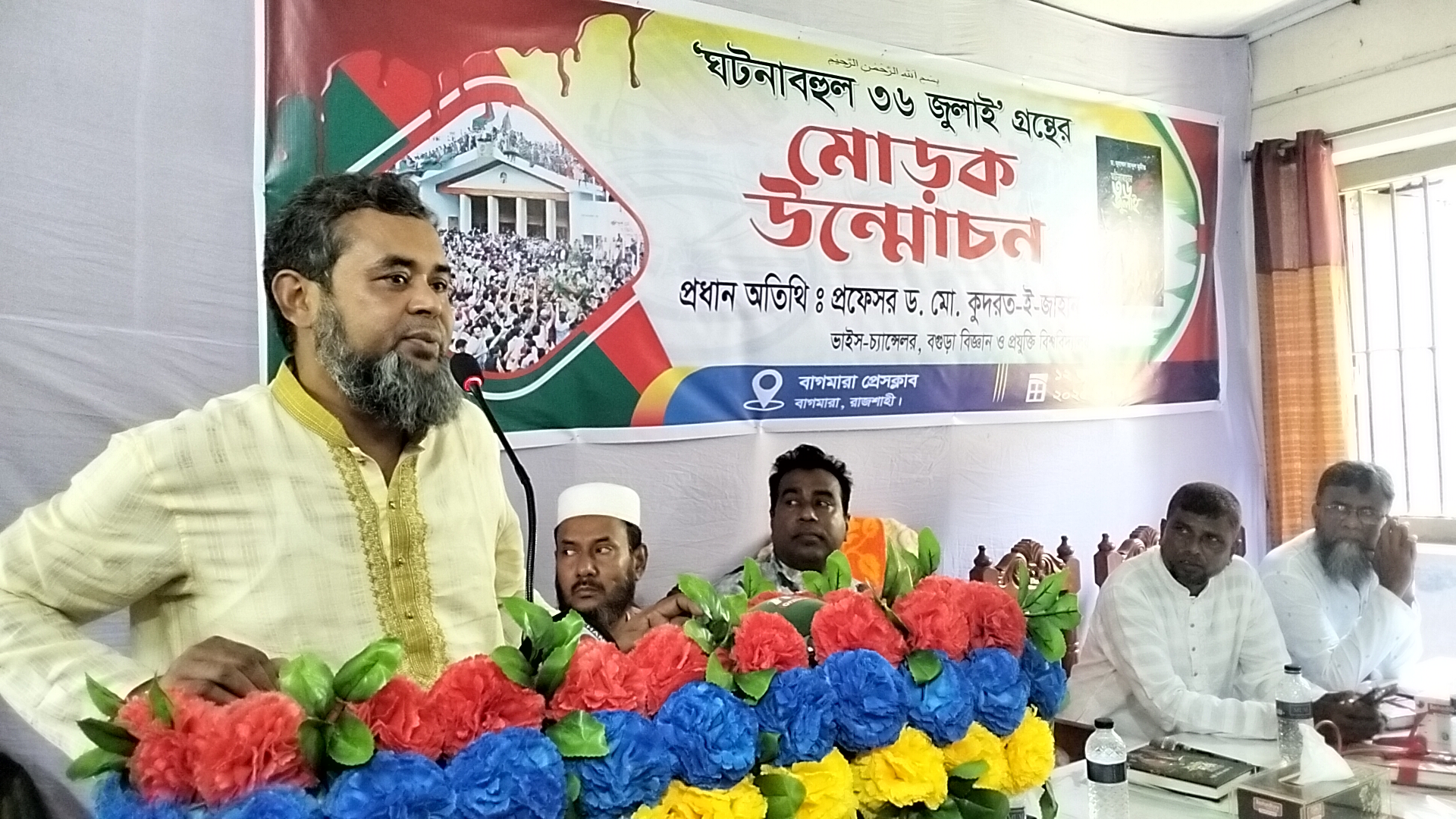 হেলাল উদ্দীন, বাগমারা : কোটা বিরোধী ছাত্র আন্দোলন নিয়ে ড. মুহাম্মদ আবদুল মুমীত এঁর লেখা “ঘটনাবহুল ৩৬ জুলাই” গ্রন্থের মোড়ক উন্মোচন করা হয়েছে। আজ শনিবার সকালে বগুড়া বিজ্ঞান ও প্রযুক্তি বিশ্ববিদ্যালয়ের ভাইস- চ্যান্সেলর প্রফেসর ড. মো. কুদরত-ই- জাহান প্রধান অতিথি থেকে “ঘটনাবহুল ৩৬ জুলাই” গ্রন্থের মোড়ক উন্মোচন করেন। রাজশাহীর বাগমারা প্রেসক্লাবে আয়োজিত অনুষ্ঠানের সভাপতিত্ব করেন প্রেসক্লাবের সভাপতি রাশেদুল হক ফিরোজ।