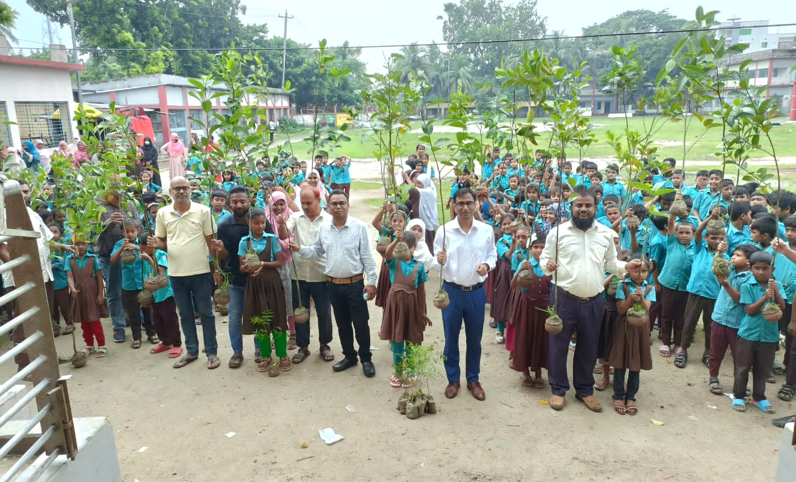 এ সময় প্রত্যেক ছাত্র-ছাত্রীর হাতে ১টি করে কাঁঠাল গাছের চারা,১ টি করে বেল গাছের চারা,১টি করে নিম গাছের চারা,১ টি করে জাম গাছের চারা বিতরণ করা হয়।
