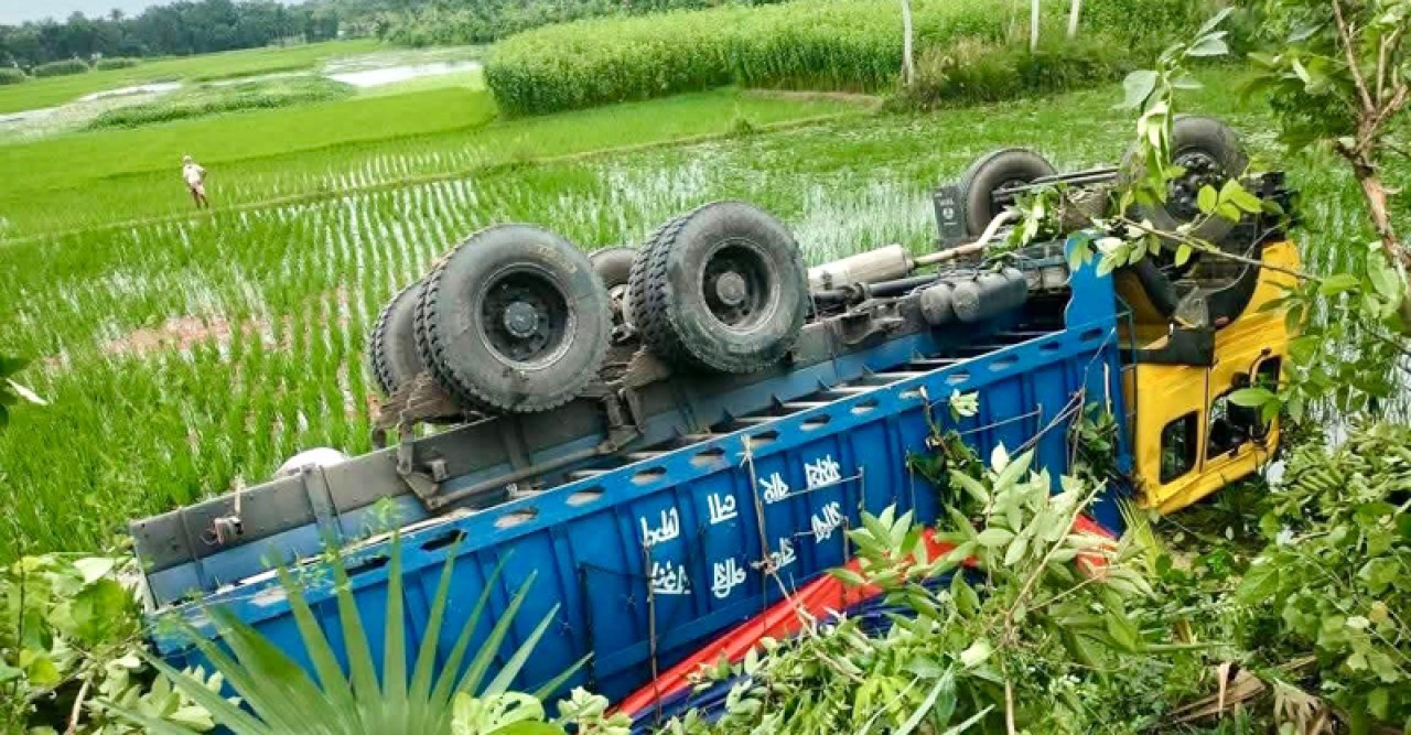 পুলিশ ও স্থানীয় সূত্রে জানা গেছে, রাজশাহীগামী এক বালুবোঝাই ট্রাক সড়কের পাশে দাঁড়ানো ছিল। ট্রাকচালক ও হেলপার পাশের এক পেট্রোল পাম্পে ওয়াশরুমে যান। এ সময় একই দিক থেকে আসা অপর পাথরবোঝাই ট্রাক নিয়ন্ত্রণ হারিয়ে বালুবোঝাই ট্রাকটিকে সজোরে ধাক্কা দিলে বালুবোঝাই ট্রাকটি রাস্তার নিচে উল্টে যায়।