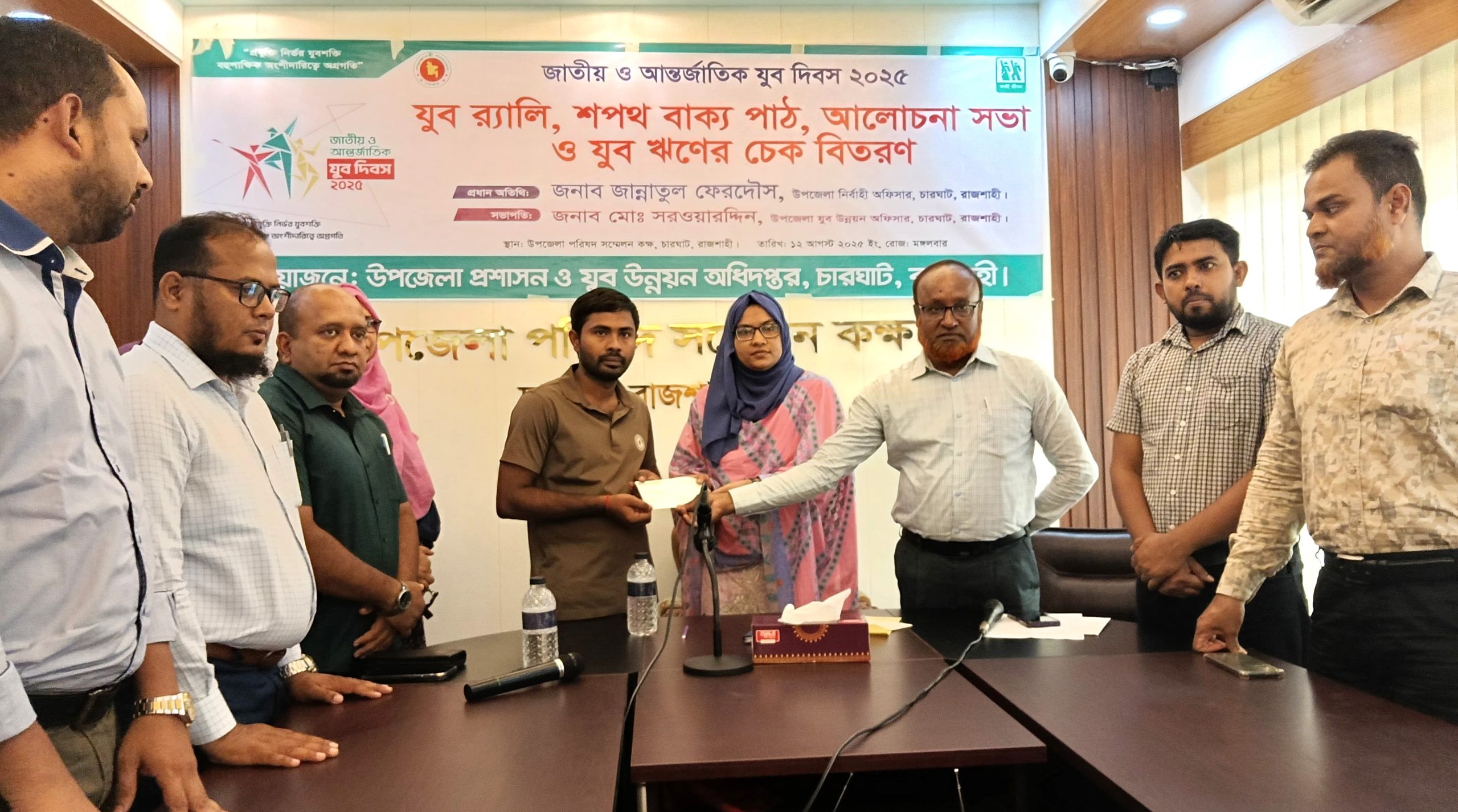 পিন্টু আলী, চারঘাট (রাজশাহী) প্রতিনিধি : “প্রযুক্তি নির্ভর যুবশক্তি, বহুপাক্ষিক অংশীদারিত্বে অগ্রগতি” এই প্রতিপাদ্য কে সামনে সারাদেশের মত রাজশাহীর চারঘাটেও জাতীয় ও আন্তর্জাতিক যুব দিবস-২০২৫ যুব র‍্যালি, শপথ বাক্য পাঠ, আলোচনা সভা ও যুব ঋণের চেক বিতরণ করা হয়েছে।