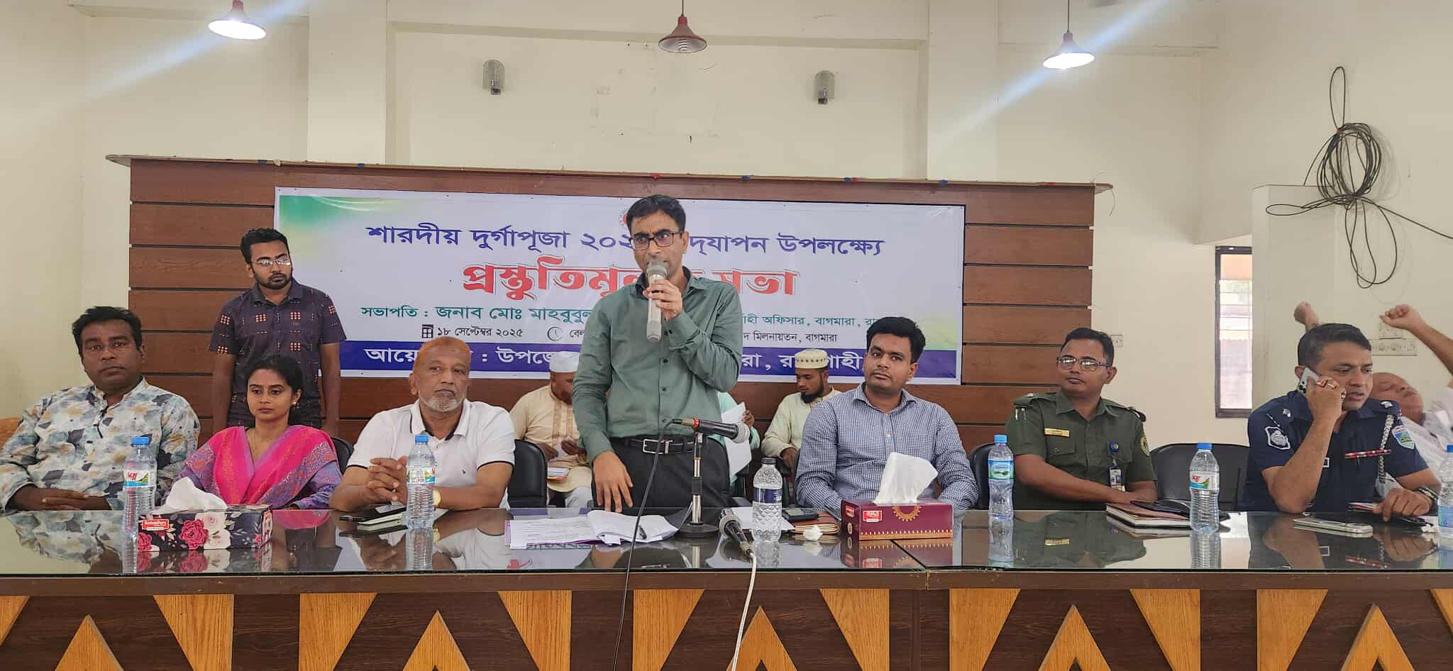 হেলাল উদ্দীন, বাগমারা : রাজশাহীর বাগমারা উপজেলায় আসন্ন শারদীয় দূর্গাপূজা-২০২৫ উপলক্ষ্যে বৃহস্পতিবার (১৮সেপ্টেম্বর) বেলা বারোটায় উপজেলা পরিষদ মিলনায়তনে প্রস্তুতিমূলক সভা অনুষ্ঠিত হয়েছে। সভায় সভাপতিত্ব করেন উপজেলা নির্বাহী কর্মকর্তা মাহবুবুল ইসলাম।