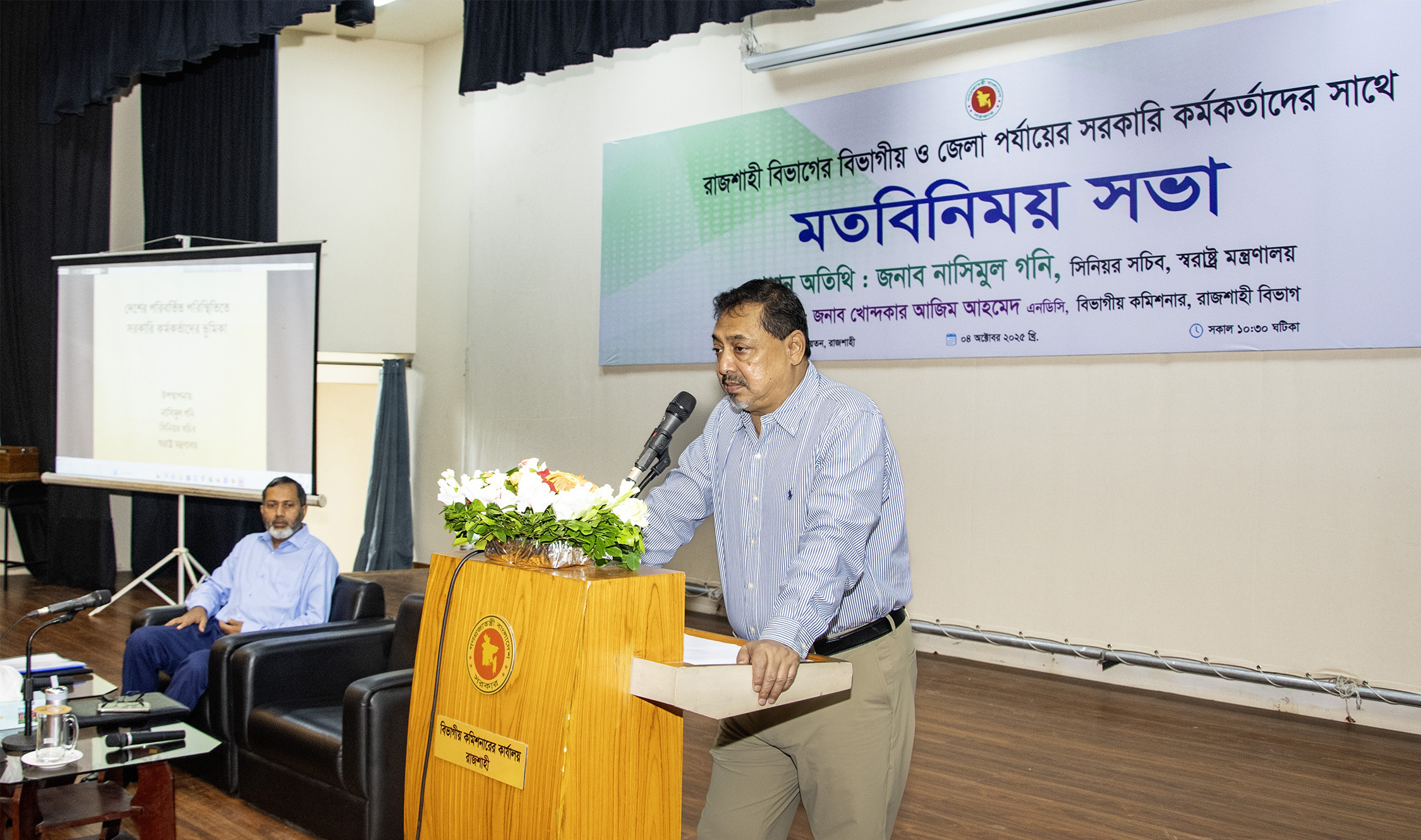 রাজশাহী বিভাগীয় কমিশনার খোন্দকার আজিম আহমেদ এর সভাপতিত্বে মতবিনিময় অনুষ্ঠানে উপস্থিত ছিলেন রাজশাহী রেঞ্জের ডিআইজি মোহাম্মদ শাহজাহান, আরএমপি কমিশনার মোহাম্মদ আবু সুফিয়ান, জেলা প্রশাসক আফিয়া আখতারসহ বিভাগের আট জেলার কর্মকর্তাবৃন্দ।