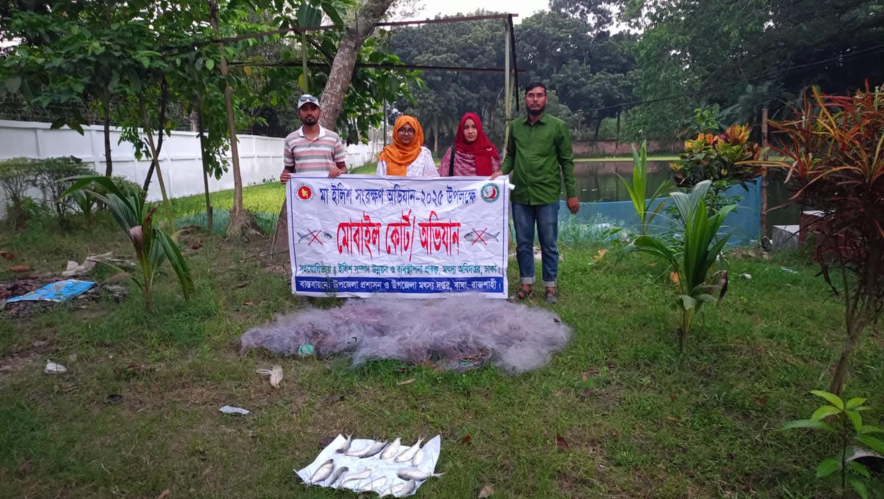 এসময় উপস্থিত ছিলেন, উপজেলা মৎস্য কর্মকর্তা তহুরা হক, বাঘা থানা পুলিশের সদস্য এবং মৎস্য দপ্তরের অন্যান্য কর্মচারীরা।