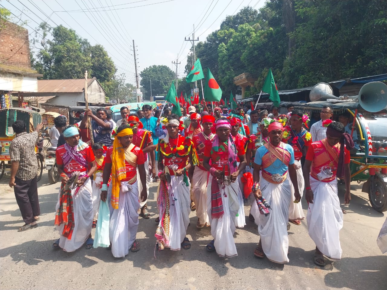 শোভাযাত্রা ও সমাবেশে অংশ নেন বিভিন্ন রাজনৈতিক ও সামাজিক সংগঠনের প্রতিনিধি, শিক্ষক-শিক্ষার্থী এবং আদিবাসী নারী-পুরুষ।