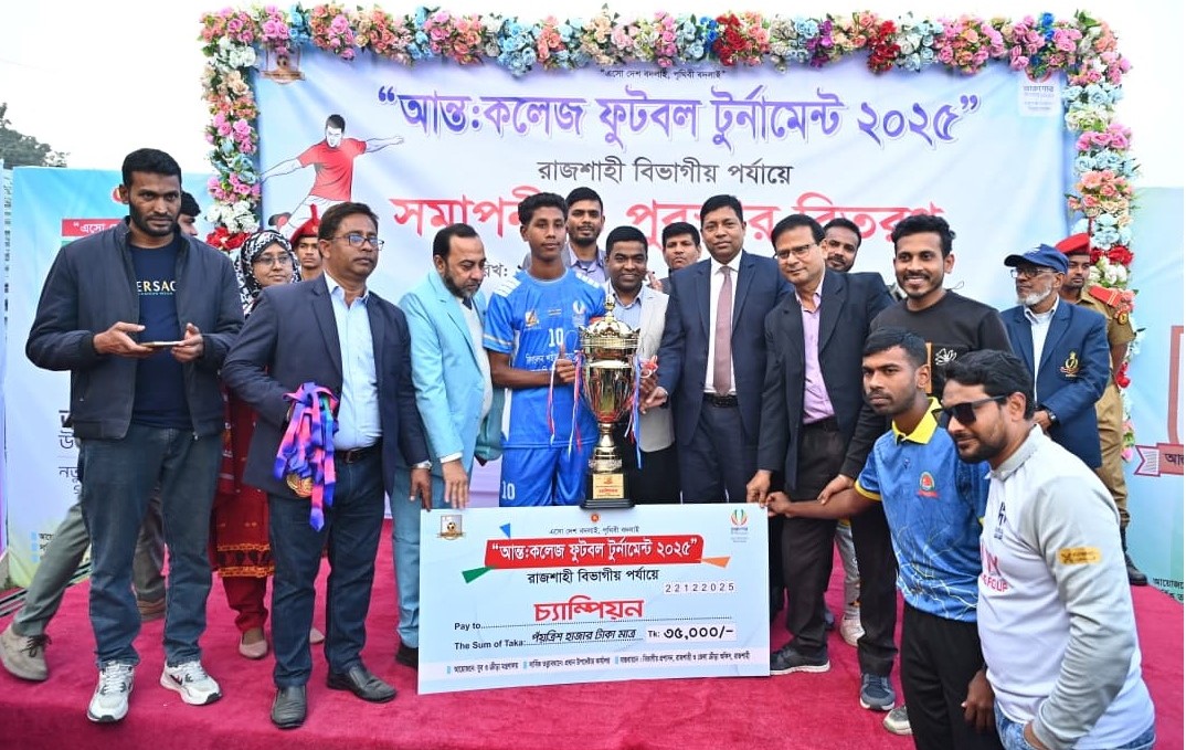 তারুণ্যের উৎসব ২০২৫ উদযাপন উপলক্ষে রাজশাহী বিভাগীয় প্রশাসন ও জেলা ক্রীড়া অফিসের উদ্যোগে এবং যুব ও ক্রীড়া মন্ত্রণালয়ের আয়োজনে অনুষ্ঠিত এই টুর্নামেন্টে রাজশাহী বিভাগের আটটি জেলার মোট ১৬টি কলেজ অংশগ্রহণ করে। ফাইনাল খেলা শেষে পুরস্কার বিতরণী অনুষ্ঠানে প্রধান অতিথি হিসেবে উপস্থিত থেকে বিজয়ী ও রানার্সআপ দলের হাতে ট্রফি ও পুরস্কার তুলে দেন অতিরিক্ত বিভাগীয় কমিশনার মোহাম্মদ হাবিবুর রহমান। এ সময় তিনি তরুণদের খেলাধুলায় আরও বেশি সম্পৃক্ত হওয়ার আহ্বান জানান।