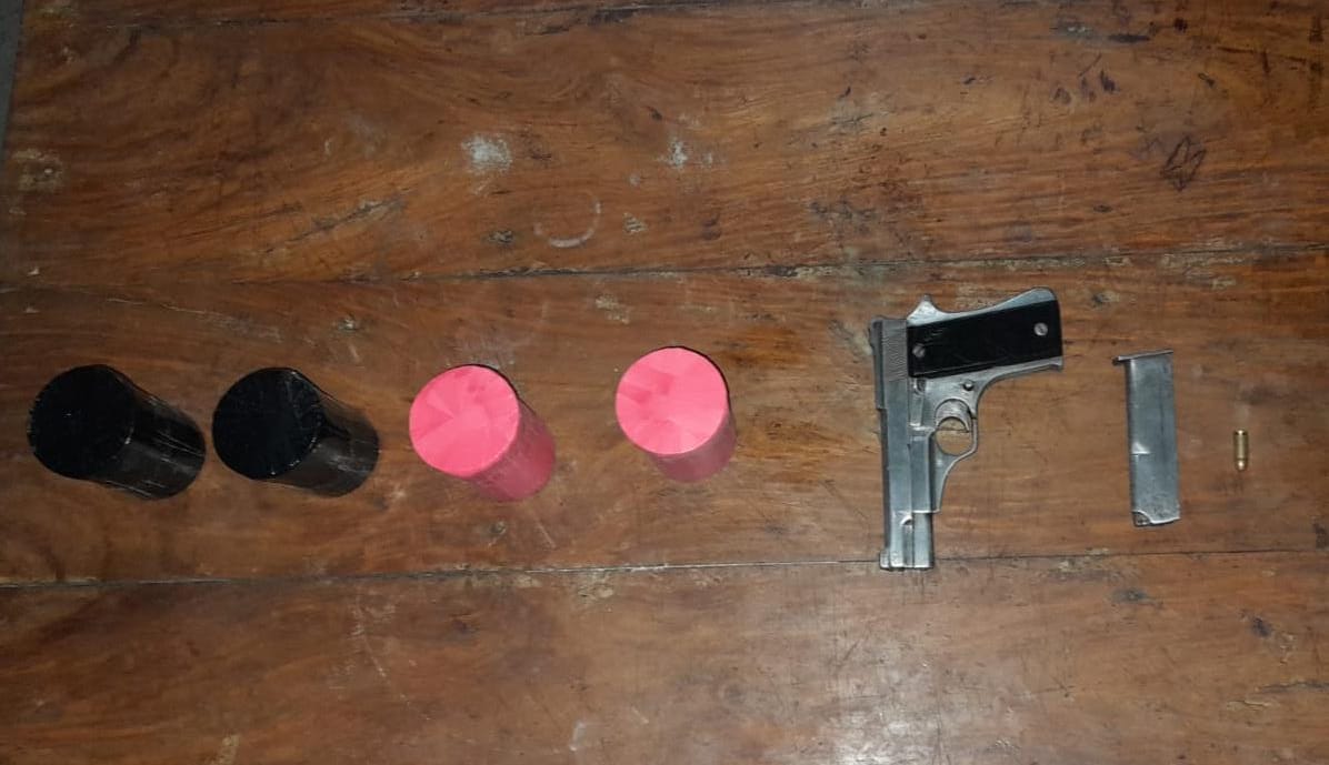 পুলিশ সূত্রে জানা যায়, গোপন সংবাদের ভিত্তিতে যৌথ বাহিনী অভিযান চালিয়ে পরিত্যক্ত বাথরুম থেকে একটি কালো ব্যাগের ভেতর থেকে বোমা সদৃশ বস্তু উদ্ধার করে। একই স্থানে রাখা কাপড়ের ব্যাগে মোড়ানো একটি রিভলভার পাওয়া যায়।
