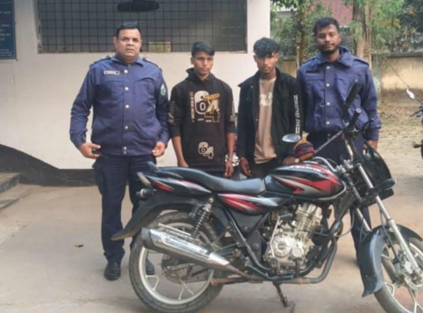 চোরাই মোটরসাইকেল উদ্ধারসহ গ্রেফতার দুই।