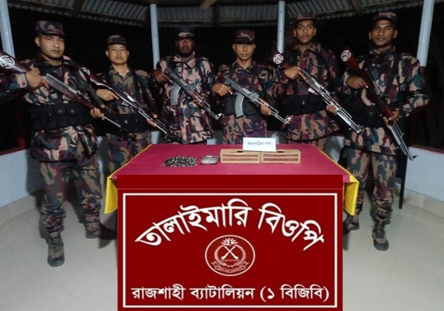 সোমবার (১৬ ফেব্রুয়ারি) আনুমানিক ৮:৫০ মিনিটে রাজশাহী ব্যাটালিয়ন (১ বিজিবি) এর অধীনস্থ তালাইমারী বিওপি’র নিয়মিত টহল দল টহল পরিচালনা সময় গোপন তথ্যের ভিত্তিতে মতিহার থানাধীন ফুলতলা ঘাট নামক এলাকার পদ্মা নদীর চরের ঝাউ বনের মধ্যে এ্যাম্বুসে অবস্থান নেয়।
