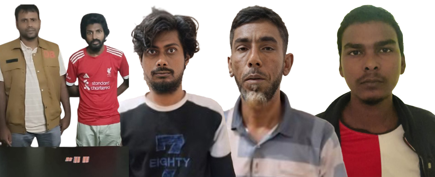 গ্রেপ্তারকৃতরা হলেন- চন্দ্রিমা থানার মেহেরচন্ডী উত্তরপাড়া গ্রামের মো: ইকবালের ছেলে মো: ফয়সাল (৩০); পবা থানার বাগসারা গ্রামের মো: মাইনুল ইসলামের ছেলে মো: সামিউল ইসলাম (২৪); একই এলাকার মৃত সাবের আলীর ছেলে মো: সাজ্জাদ আলী (৪৫); এবং বোয়ালিয়া থানার বখতিয়ারাবাদ মালদা কলোনী এলাকার মো: জানু শেখের ছেলে মো: জাহিদ ইসলাম (২৪)। সকলেই রাজশাহী মহানগরীর বাসিন্দা।