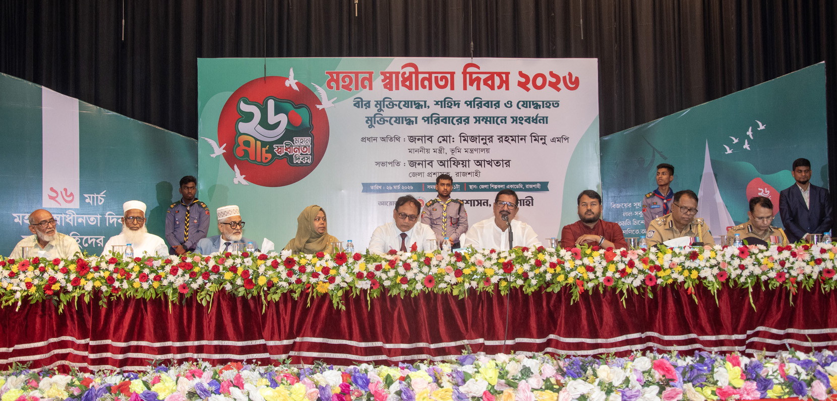 বৃহস্পতিবার (২৬ মার্চ) বেলা এগারোটায় মহান স্বাধীনতা ও জাতীয় দিবস উদ্যাপন উপলক্ষ্যে রাজশাহী জেলা শিল্পকলা একাডেমি মিলনায়তনে বীর মুক্তিযোদ্ধা, শহিদ পরিবার ও যোদ্ধাহত মুক্তিযোদ্ধা পরিবারের সম্মানে জেলা প্রশাসন আয়োজিত সংবর্ধনা অনুষ্ঠানে প্রধান অতিথির বক্তৃতায় তিনি এসব কথা বলেন।