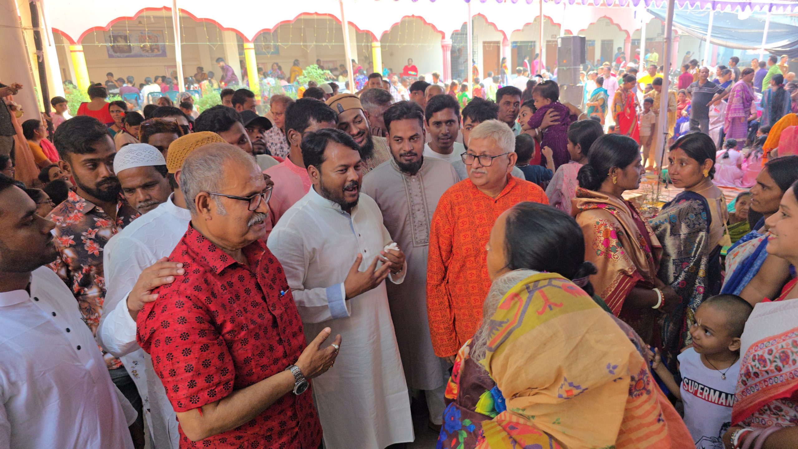 কর্মসূচির শুরুতে রাসিক প্রশাসক মোঃ মাহফুজুর রহমান রিটনকে ফুলেল শুভেচ্ছা জানান মন্দির কমিটির নেতৃবৃন্দ।