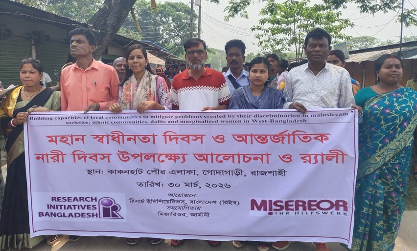 মুক্তার হোসেন, গোদাগাড়ী : রাজশাহীর গোদাগাড়ী উপজেলার কাকনহাটে মহান স্বাধীনতা দিবস ও আন্তর্জাতিক নারী দিবস উপলক্ষ্যে বর্ণাঢ্য র‌্যালি ও আলোচনা সভা অনুষ্ঠিত হয়েছে। সোমবার (৩০ মার্চ) রিসার্চ ইনিশিয়েটিভস বাংলাদেশ (রিইব)-এর উদ্যোগে কাকনহাটের ‘আশ্বাস’ কার্যালয়ে এই অনুষ্ঠানের আয়োজন করা হয়।