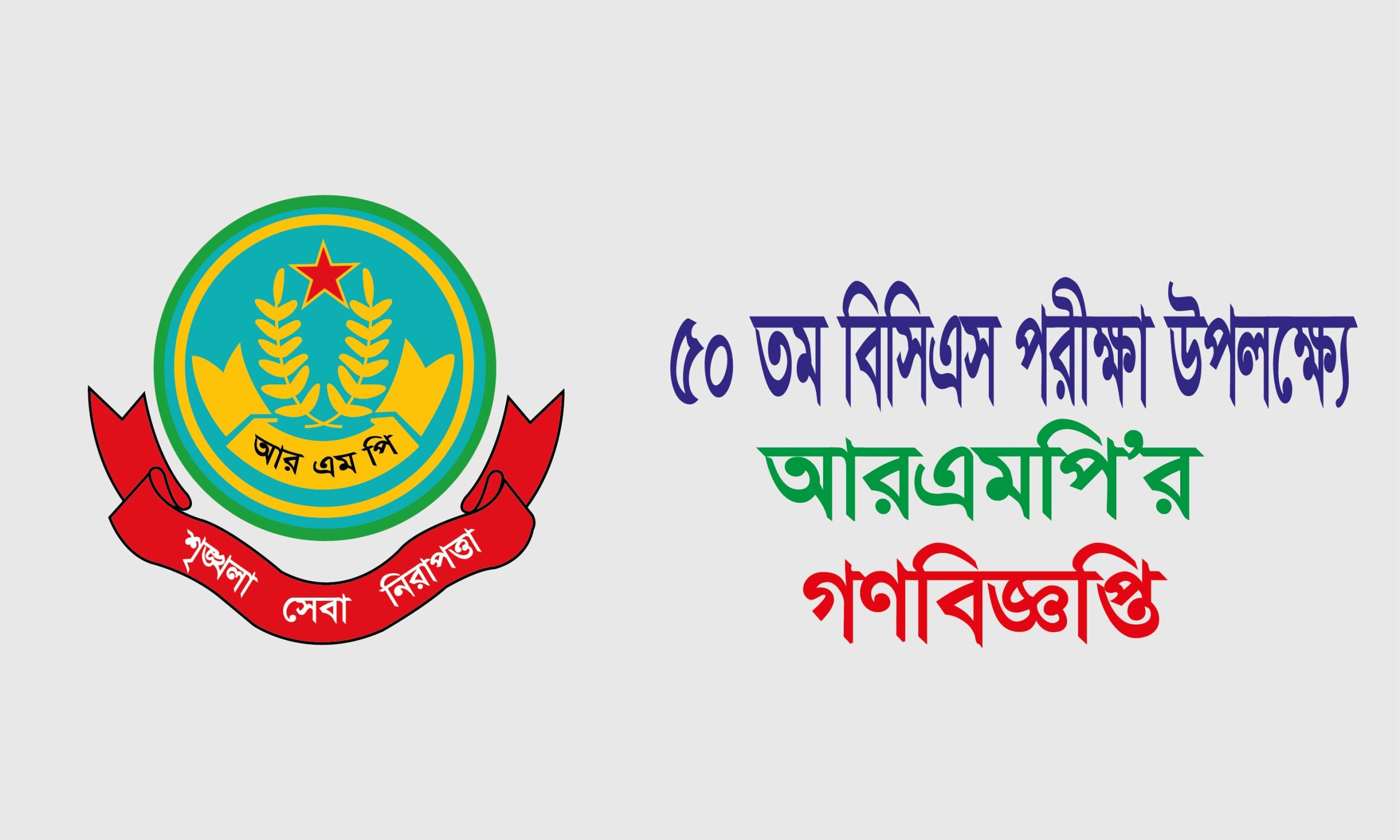 সংবাদ বিজ্ঞপ্তি : বাংলাদেশ সরকারী কর্ম কমিশন কর্তৃক আয়োজিত ৫০ তম বিসিএস পরীক্ষা এর আবশ্যিক বিষয়ের লিখিত পরীক্ষা আগামী ৯, ,১২, ,১৬, ১৯, ২০, ২২ ও ২৩ এপ্রিল (সকাল ১০.০০ ঘটিকা থেকে দুপুর ১.০০ ঘটিকা) এবং পদ-সংশ্লিষ্ট বিষয়ের লিখিত পরীক্ষা আগামী ২৭ এপ্রিল হতে ৩০ এপ্রিল ও ৪ মে হতে ৭ মে পর্যন্ত (সকাল ১০.০০ ঘটিকা থেকে দুপুর ২.০০ ঘটিকা) রাজশাহী মহানগরীর মিশন বালিকা উচ্চ বিদ্যালয়, বুলনপুর, রাজশাহী কোর্ট, রাজপাড়া, রাজশাহী কেন্দ্রে অনুষ্ঠিত হবে।