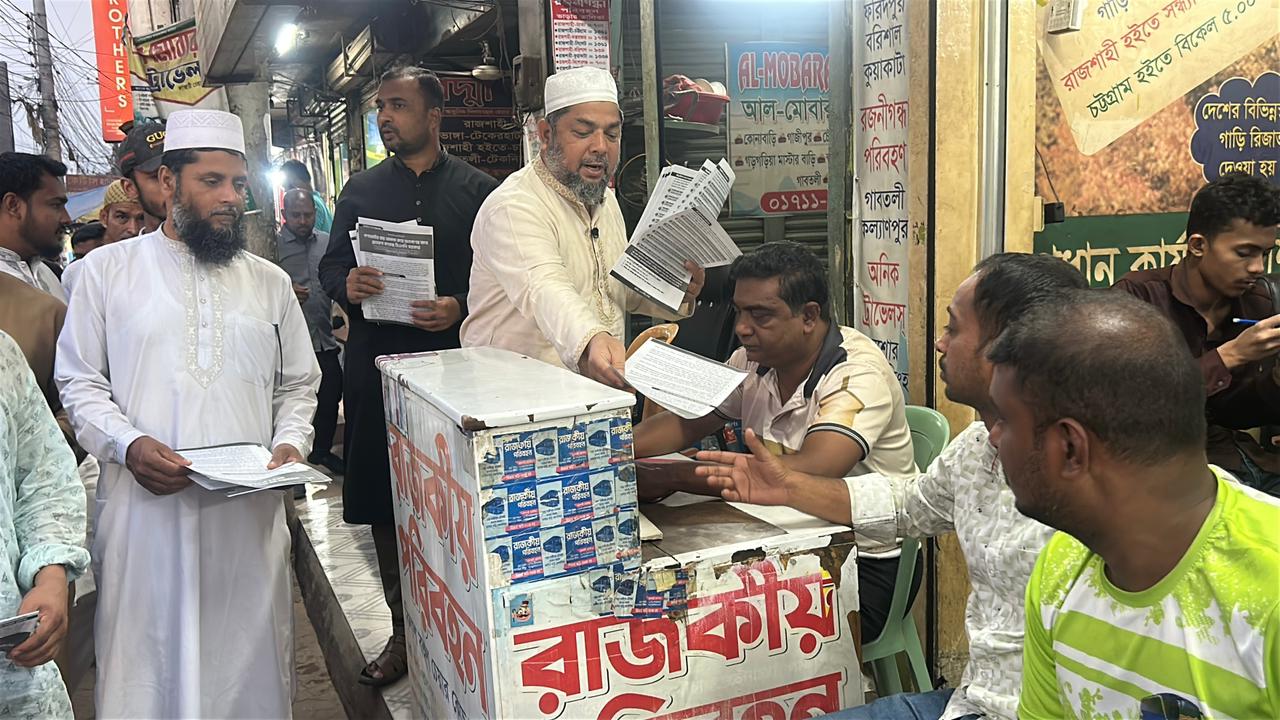 বৃহস্পতিবার সন্ধ্যায় রাজশাহী নগরীর শিরোইল বাসটার্মিনাল এলাকার জনসাধারণের মাঝে লিফলেট বিতরণ করা হয়।
