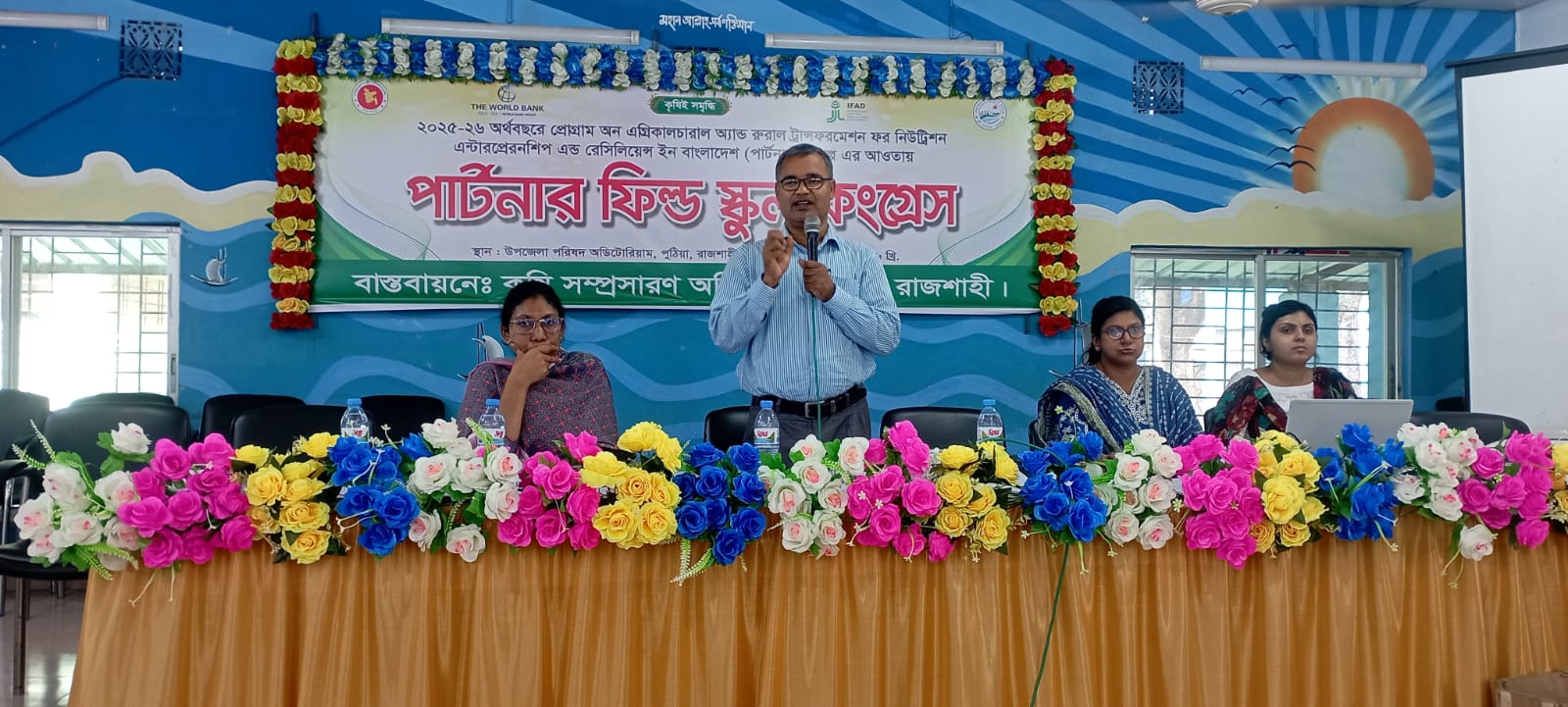 স্টাফ রিপোর্টার, পুঠিয়া : রাজশাহী পুঠিয়ায় কৃষি অফিসের উদ্যোগে ‘প্রোগ্রাম অন এগ্রিকালচারাল অ্যান্ড রুরাল ট্রান্সফরমেশন ফর নিউট্রিশন, এন্টারপ্রেনরশিপ অ্যান্ড রেসিলিয়েন্স ইন বাংলাদেশ (পার্টনার)’ শীর্ষক ফিল্ড স্কুল কংগ্রেস অনুষ্ঠিত হয়েছে।