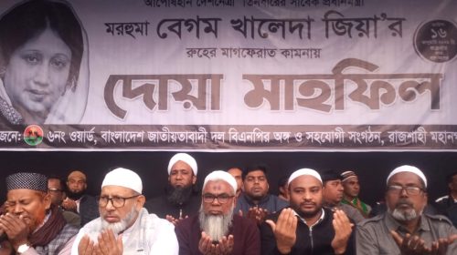 স্টাফ রিপোর্টার: রাজশাহী নগরীর লক্ষীপুর মোড়ে বাংলাদেশ জাতীয়তাবাদী দল বিএনপি রাজশাহী মহানগরের সাবেক ছাত্রদলের সহসভাপতি মাহমুদ হাসান শিশিলের আয়োজনে সাবেক তিনবারের প্রধানমন্ত্রী মরহুমা বেগম খালেদা জিয়ার রুহের মাগফেরাত কামনা করে…